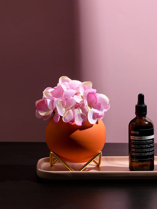 Ceramic Plant Pot, Round With Gold Metal Holder